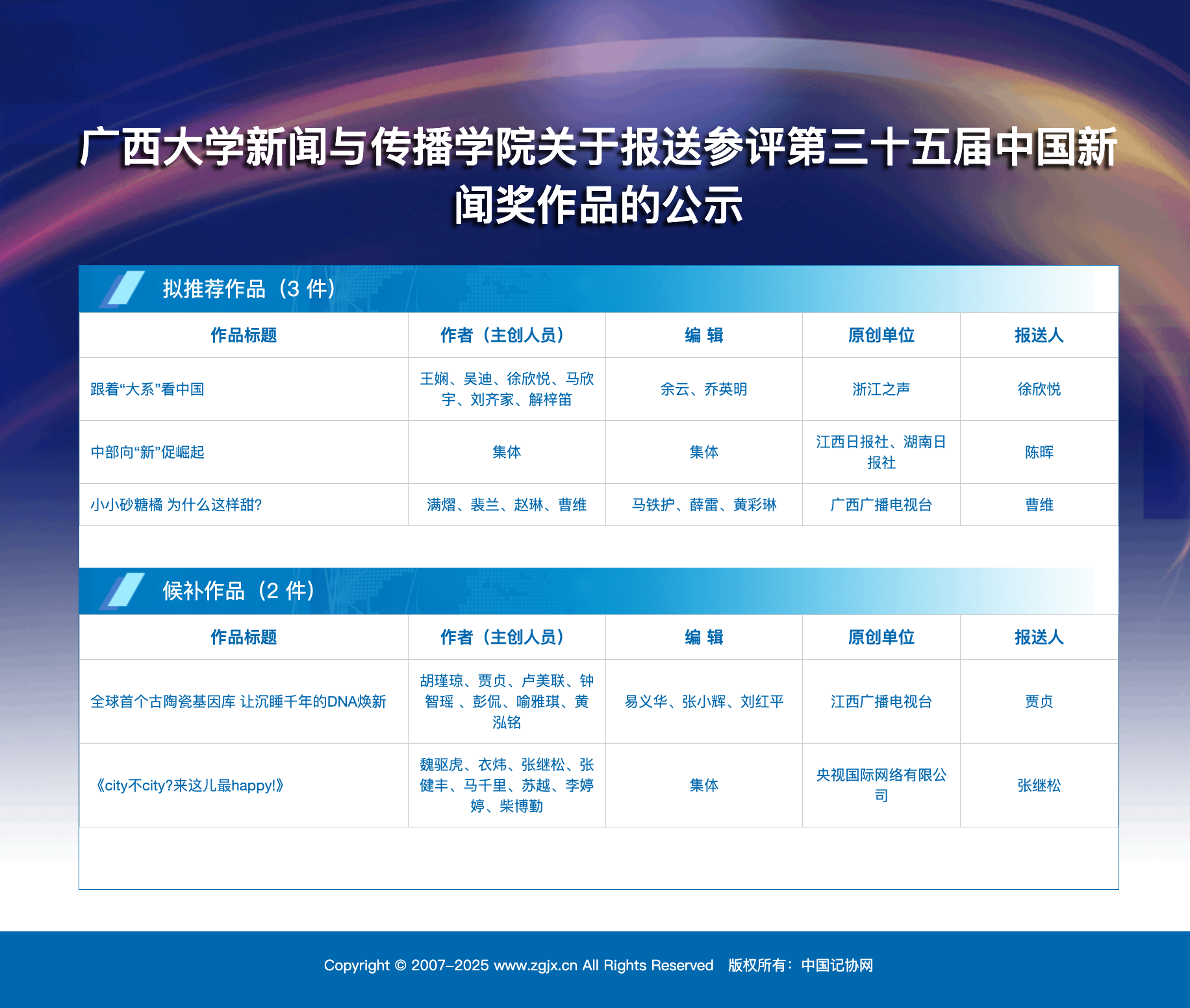 中国记协评奖系统公示链接:http://www.pingjiang.zgjx.cn/News35/webgs/toCPM/ZJTJ/imp_office_2025_20
