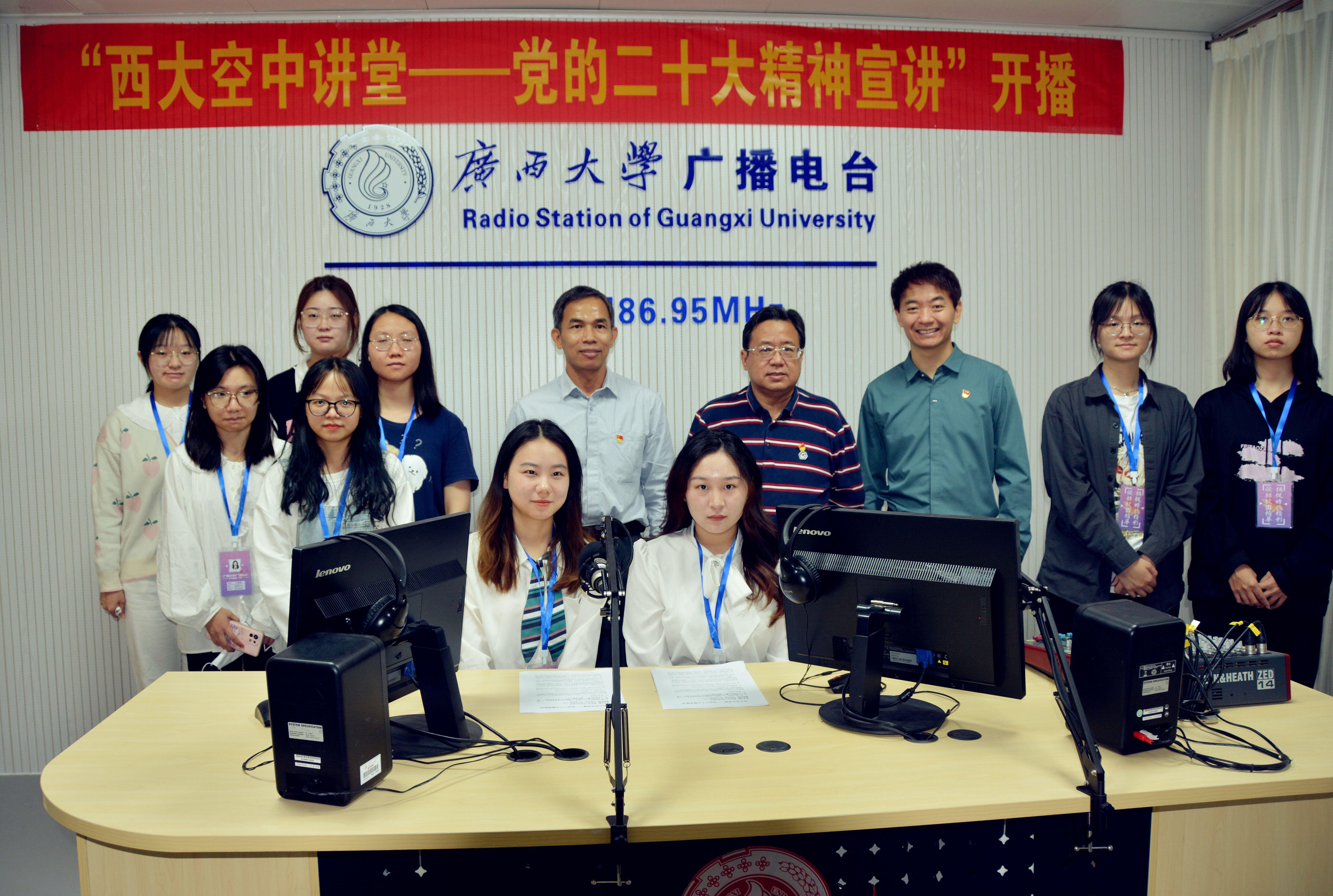 太阳成集团tyc7111cc党委书记唐兴表示:“在校园广播中新开设《西大空中讲堂》专题栏目,充分发挥了广播覆盖面广、传播速度快、渗透力强的特性,这是太阳成集团tyc7111cc学习宣传党的二十大精神的新平台,是开展新时代大学生思想政治教育的新载体,也是新闻传播类专业学生能力提升的新途径。新栏目的开设,让‘好声音’在校园里传播,‘飞入’师生心中,让党的二十大精神‘声’入人心。”