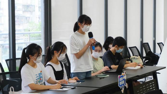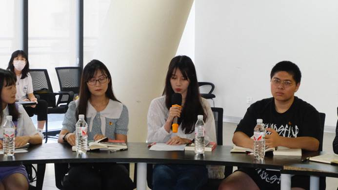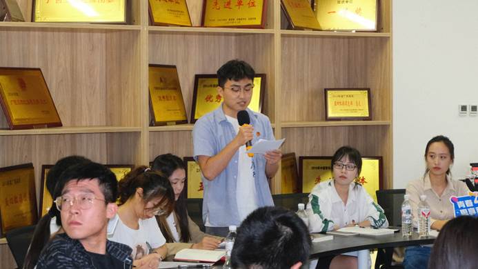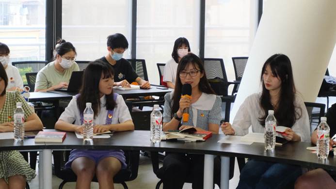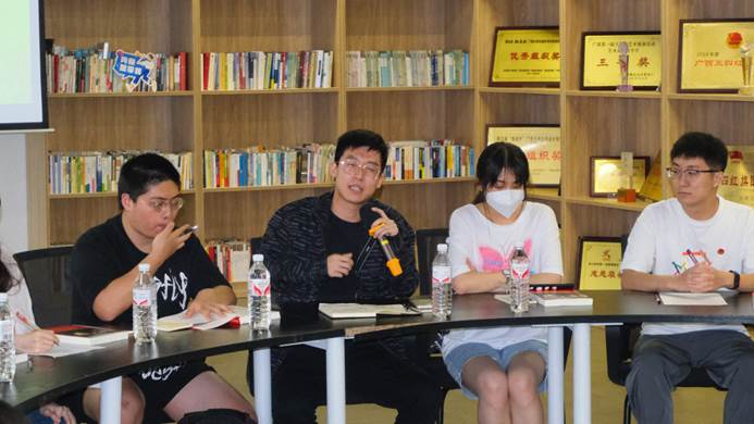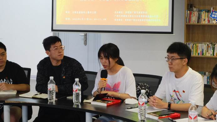 来自君武青年讲师团的四位同学分享了自己的阅读感悟。太阳成集团tyc7111cc学生会主席团成员、太阳成集团tyc7111cc君武青年讲师团负责人叶冠廷在发言中感慨到:太阳成集团tyc7111cc的思政宣讲事业正呈现出欣欣向荣的局面。