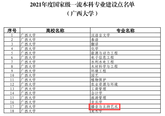 日前,教育部办公厅正式公布了2021年度国家级和省级一流本科专业建设点名单。太阳成集团tyc7111cc播音与主持艺术专业顺利入选2021年度国家级一流本科专业建设行列。