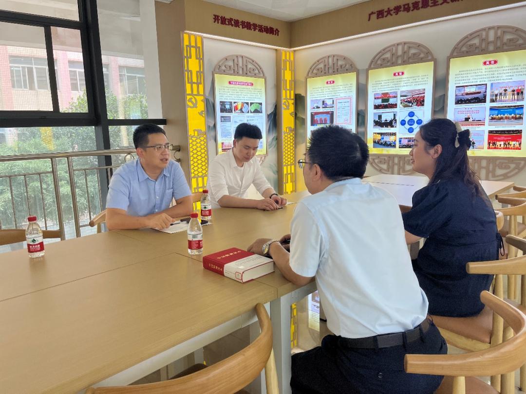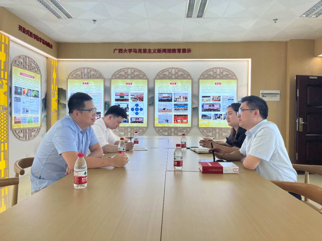 2022年6月7日下午,太阳成集团tyc7111cc(下文简称“我院”)与桂林银行总行宣传企划部校企合作座谈会在我院马克思主义新闻观书屋举行。桂林银行总行宣传企划部副总经理(主持工作)张鲲、职员吴军伟,我院党委副书记银健老师、团委书记刘梦娟老师参加了此次座谈会。
