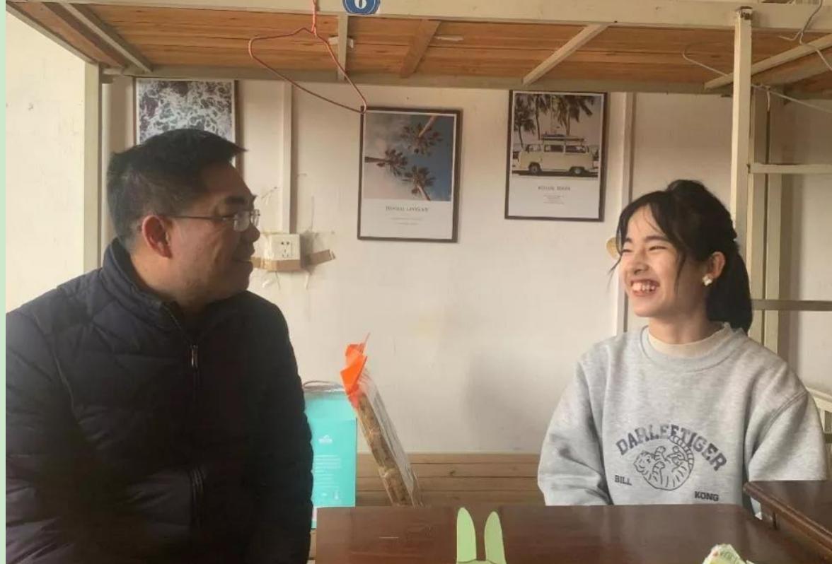 刘梦娟老师与同学们进行亲切地交谈,询问他们的生活状况且致以温暖祝福。