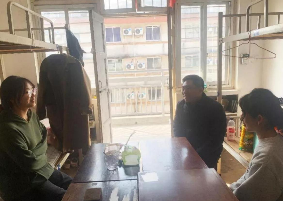 早上十点,老师们一同走访我院留校学生宿舍,看望受疫情影响和因学业备考而留校的本科生。银健老师询问每位同学的学业进展及生活情况,详细了解同学们的家庭状况和生活需求。