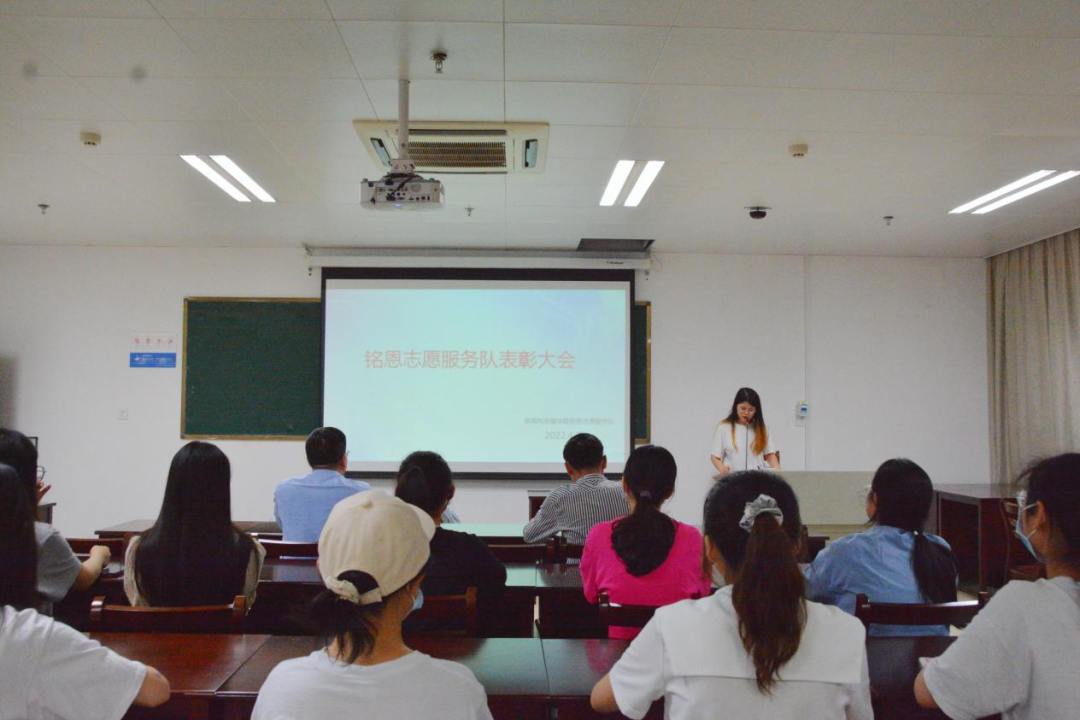 4月12日晚,我院铭恩志愿服务队在学院510教室举行总结表彰大会,党委副书记银健老师、学工组辅导员王志标老师及铭恩志愿服务队全体成员参与了本次会议。