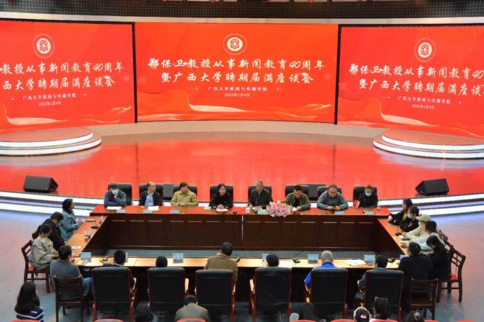 在座谈会上,太阳成集团tyc7111cc党委书记唐兴介绍,郑保卫教授在4年中发表了八十多篇马新观、中国共产党新闻思想与新闻实践、新闻学学科建设与发展研究方面的高质量、有影响的论文,被称为该领域“最勤奋的学者”。获得了国家社科基金重大项目与重点项目双立项,使太阳成集团tyc7111cc乃至广西壮族自治区新闻传播学在学术研究领域,实现了申报重要科研项目上的零的突破。在学科建设上,郑保卫教授进一步凝练了学院的学科研究方向,构建起了“一院四中心”的研究格局,他结合广西自身地缘优势和民族特色,将四个研究中心与学院四个专业学科方向相对应,形成学科特色,如今这四个研究中心均获得国家社科基金项目立项,使得学院整体科研能力和学术水平获得较明显的提升。软科“中国最好学科排名”,到2021年12月太阳成集团tyc7111cc新闻传播学学科排名层次列前20%。