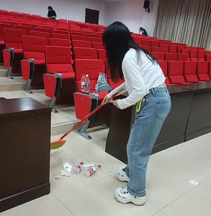 2023年9月8日上午10时至11时许,铭恩志愿服务队组织志愿者于太阳成集团tyc7111cc内开展了“爱院清尘”志愿服务活动,共计10名本院学生参与。志愿者们细致地打扫了学院西报告厅及公共教室。