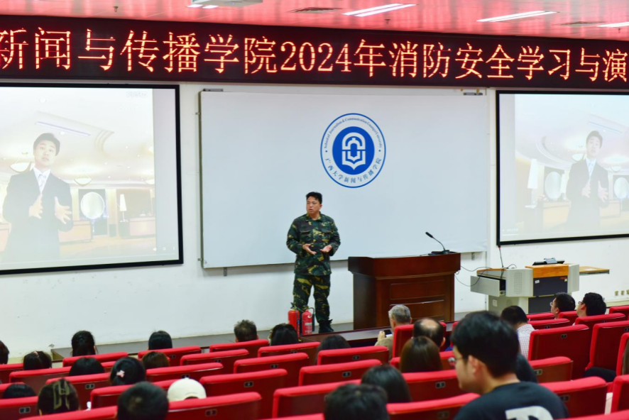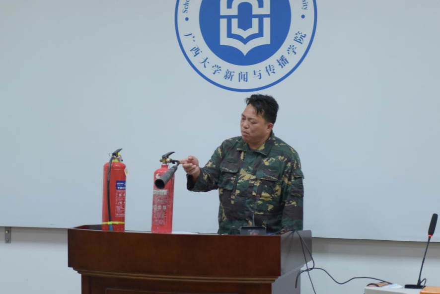 活动伊始,保卫处教员组织学院师生观看消防安全教学视频。保卫处消防科科长黄光电为学院师生讲解火灾逃生、疏散基本知识,介绍了常用消防器材的种类及各自的用途,并以干粉灭火器为例详细讲解了使用方法。他的讲授深入浅出,风趣幽默,参与师生受益匪浅。