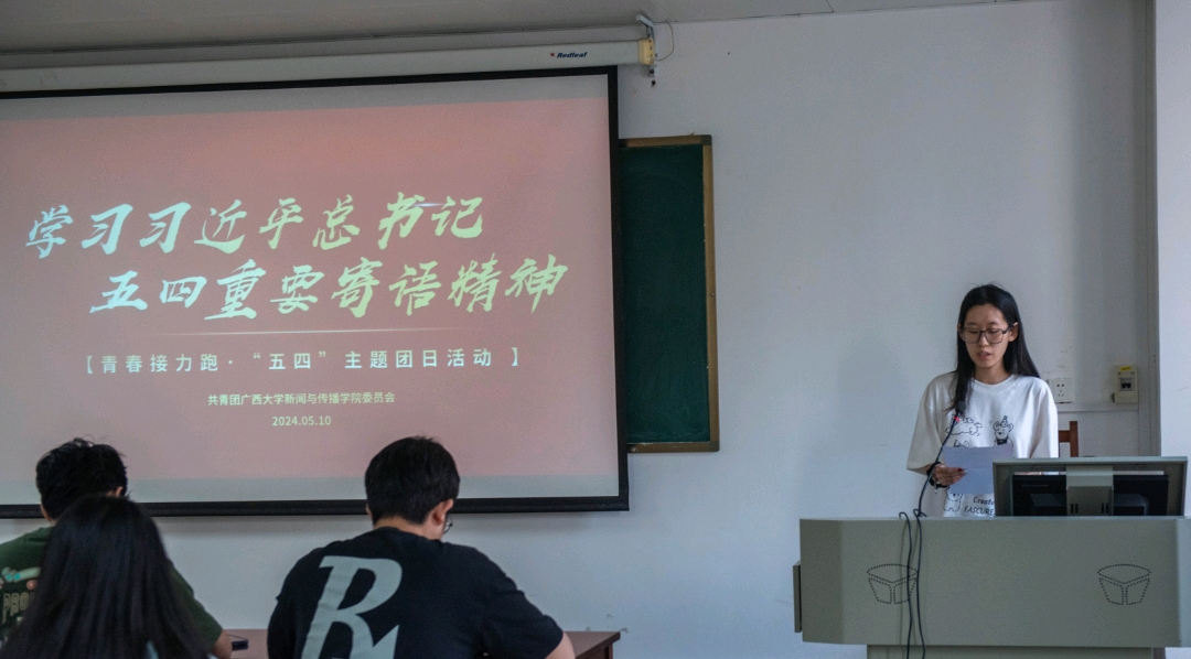 为了更好地帮助学生干部深入了解五四重要寄语精神的内涵和意义,增强责任感和使命感,5月10日,学院团委组织全体学生干部在学院507开展了集体学习活动,作为“排头兵”的学生干部在专题学习会上充分思考交流,他们结合自己的工作经历和思考体会,畅谈如何在实际工作中践行五四重要寄语精神。