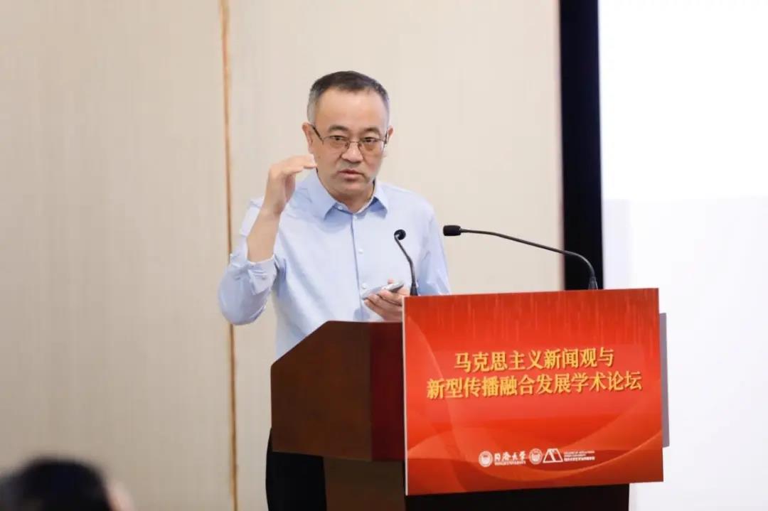中国社会科学院大学新闻传播学院教授、《新闻与传播研究》执行主编朱鸿军教授谈到全媒体传播体系建设的困境与破局。他介绍团队在调研中的实践发现,目前全媒体传播体系建设中存在建设思路不清、重视程度不够、建设方案不明以及内外协调不足四个现实困境。在“信息找人”的新媒体时代下,需要继承“全党办报”的历史底蕴并向“全党办媒体”的方向创新,强调马克思主义新闻观的理论创新是推动全媒体传播体系建设的有效之法。