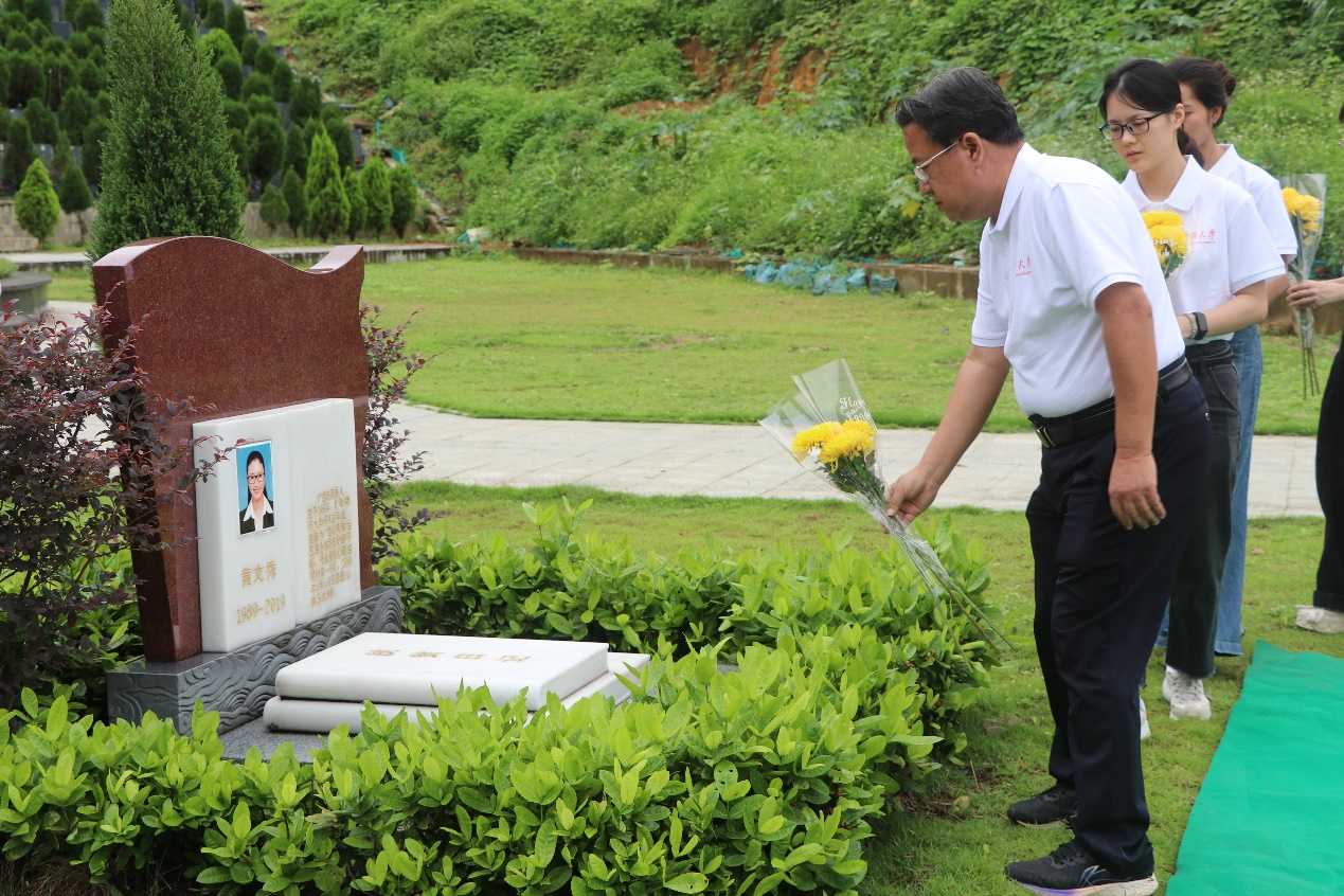 (师生们依次为黄文秀同志敬献鲜花、寄托哀思 照片学院提供)
