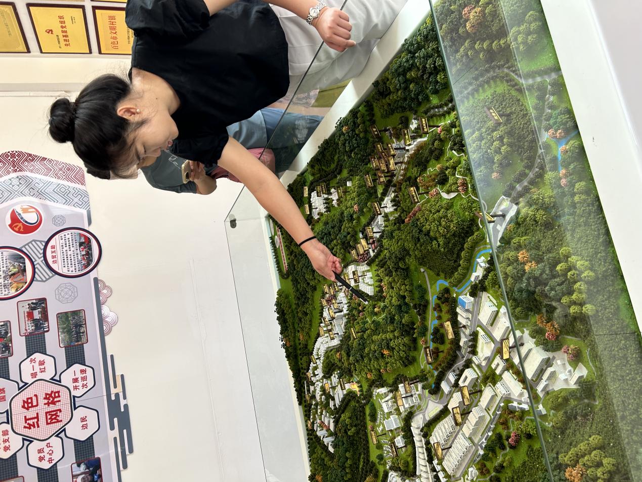 胡龙村党群服务中心工作人员为调研组现场讲解