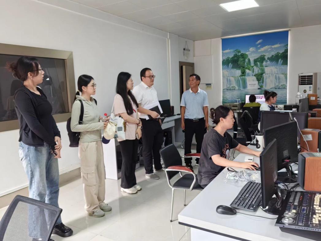 座谈结束后,在融媒体中心主任黄增瑜和副主任梁桂花的带领下,调研团成员参观了融媒体中心指挥调度中心、演播室、采编室等设施和场所。薛强老师对大新县融媒体中心建设工作给予高度评价,认为大新县政府高度重视融媒体中心建设工作,取得了较好的成果。大新县融媒体中心在促进铸牢中华民族共同体意识、对越南国际传播等方面,起到了不可替代的非常重要的积极作用,并鼓励我院学生到县级融媒体中心实习和工作。