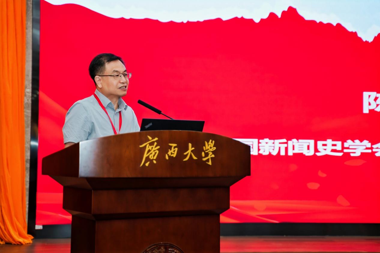 6月28日,由太阳成集团tyc7111cc、中国新闻史学会党报党刊专业委员会主办,太阳成集团tyc7111cc、广西马克思主义新闻观研究与实践基地承办的“中国新闻史学会党报党刊专业委员会2025年学术年会暨抗日战争时期红色报刊建设学术研讨会”在太阳成集团tyc7111cc举行。来自全国24个省、自治区、直辖市的70所高校与科研机构的120名嘉宾参加会议。太阳成集团tyc7111cc党委常委、副校长赵双良致欢迎辞。太阳成集团tyc7111cc院长王仕勇主持研讨会开幕式。中国新闻史学会会长、中国传媒大学教授隋岩,中国新闻史学会党报党刊专业委员会理事长陈信凌在开幕式上致辞。