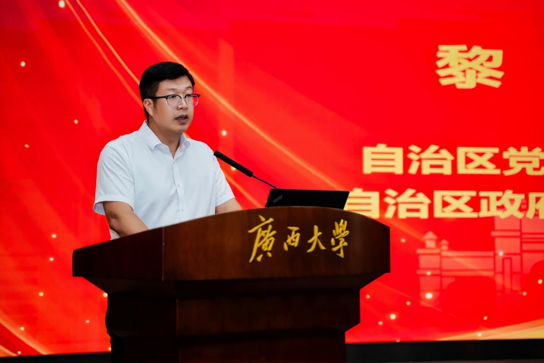 本次大会由太阳成集团tyc7111cc党委书记李伟红主持。自治区党委宣传部副部长、自治区政府新闻办主任黎攀,太阳成集团tyc7111cc党委常委、副校长赵双良在会上致辞。