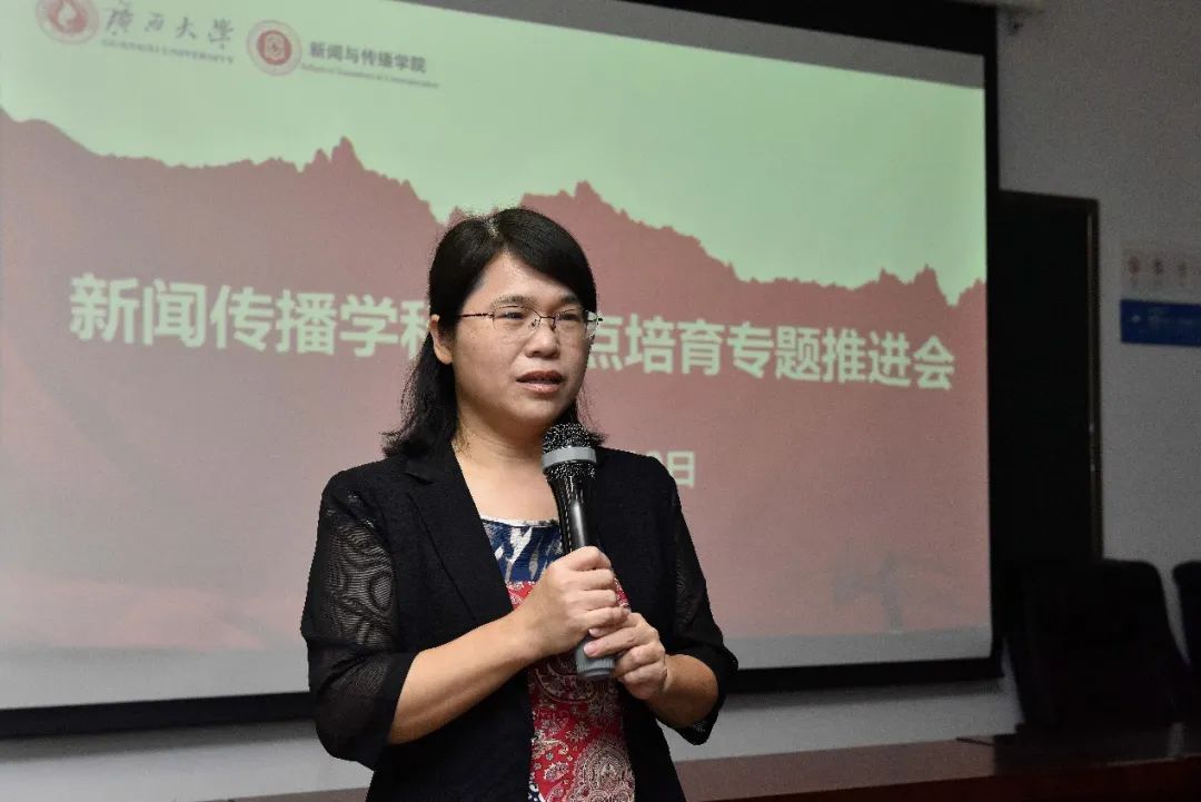 王仕勇院长以《不负历史 齐心协力培育西大新闻传播学博士点》为题作了动员讲话。他首先回顾了学院新闻传播学科的发展历程。作为全国首批开设新闻学本科专业的四所高校之一,全国首批五个新闻学硕士点之一,学院教职工要对得起学科曾经辉煌的历史。近年来,学院在学科建设方面持续推进,先后获批国家级特色专业、国家一流本科专业建设点,入选教育部“三全育人”综合改革试点单位、“中国新闻奖”报送单位及中宣部舆情信息直报点。学院聚焦马克思主义新闻观、面向东盟国际传播、铸牢中华民族共同体意识背景下的民族文化传播等方向,逐步形成具有区域特色的学科建设成果。自治区党委宣传部、教育厅明确提出支持太阳成集团tyc7111cc根据国家政策申报新闻传播学博士点,填补自治区新闻传播学博士点空白。