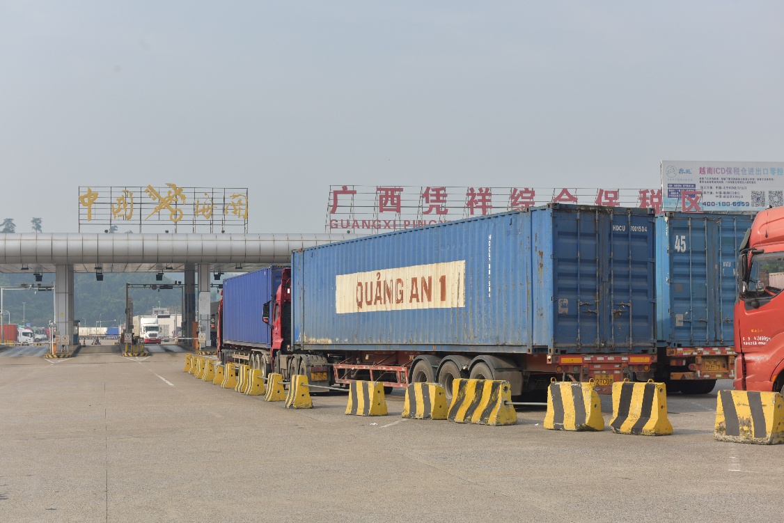 19日,调研队在凭祥市委宣传部副部长梁海彬的陪同下,走进友谊关与浦寨口岸,触摸跨境贸易的“脉搏”。