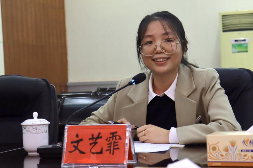 农学院2021届毕业生、中共柳州市柳江区委组织部公务员股副股长文艺霏则分享了自己驻村两年的工作体会。她谈到,从城乡居民医保催缴到帮助脱贫户销售农产品,每一件基层小事都让她深刻理解了“脚下沾有多少泥土,心中就沉淀多少真情”的含义。