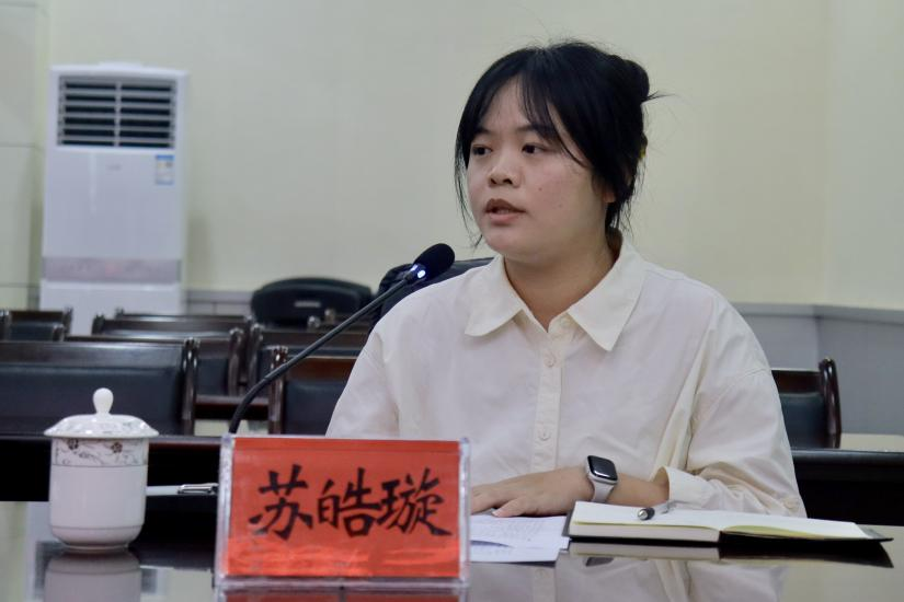 工商管理学院 2022 届毕业生、柳州市柳江区进德镇一级科员苏皓璇介绍了自己参与后进村整顿、推动优质稻产业发展和筹备农民丰收节等工作情况。她表示,基层实践让她将专业知识与实际工作紧密结合,能力得到了全方位提升。她还提到,自己已考取母校公共管理专业非全日制研究生,希望通过“实践+理论”的方式不断充实自己。