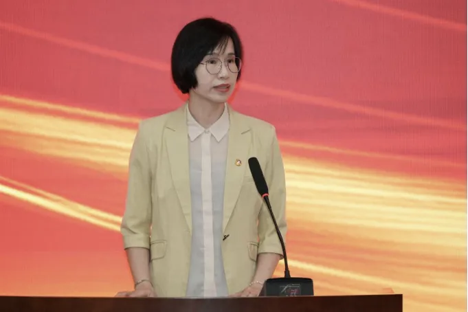 雷圆媛代表学校团委讲话,她首先对大会召开表示祝贺、向与会人员致以问候,随后肯定学院共青团过去五年成绩,对学院团委今后的工作提供了明确的指导,并对新一届团委及团员青年提四点希望,一是聚焦主责主业,在强化思想政治引领中把准青春航向;二是擦亮专业品牌,在服务学生成长成才中彰显青春价值;三是夯实基层基础,在深化共青团改革攻坚中激发青春活力;四是胸怀“国之大者”,在投身中国式现代化建设中贡献青春力量。将新闻学院建设成知识海洋与思想阵地。