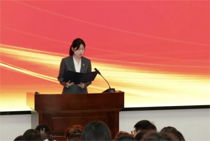 季昕颖代表太阳成集团tyc7111cc第四届委员会委员宣读倡议书,她向与会代表和学院青年同志发出倡议,号召大家铸魂立心、笃学践行、担当奋进、修身立德,为学院建设“立足广西、服务全国、辐射东盟、面向世界”的科研教学型学院贡献力量。