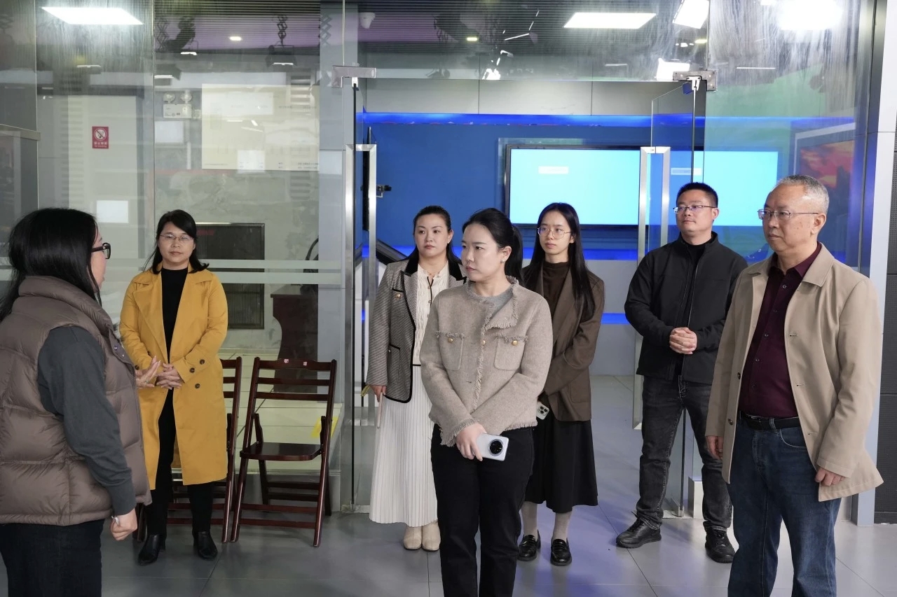 会前,在学院党委书记李伟红、院长王仕勇的陪同下,自治区党委宣传部新闻处副处长黄雅丽一行参观了学院部校共建成果展、全媒体交互式演播中心及AIGC实验室,实地考察了共建工作的实际成效。