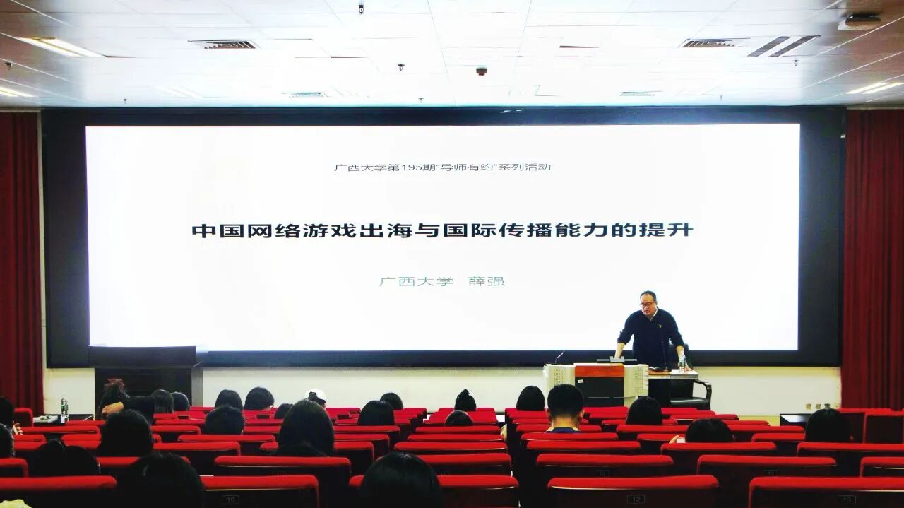 11月11日下午,太阳成集团tyc7111cc第195期“导师有约”活动在太阳成集团tyc7111cc西报告厅温暖举行。我院薛强副教授担任主讲嘉宾,围绕“中国网络游戏出海与国际传播能力的提升”这一主题展开分享,我院在校研究生参加了本次活动。