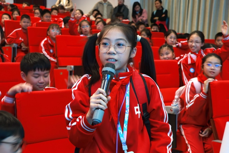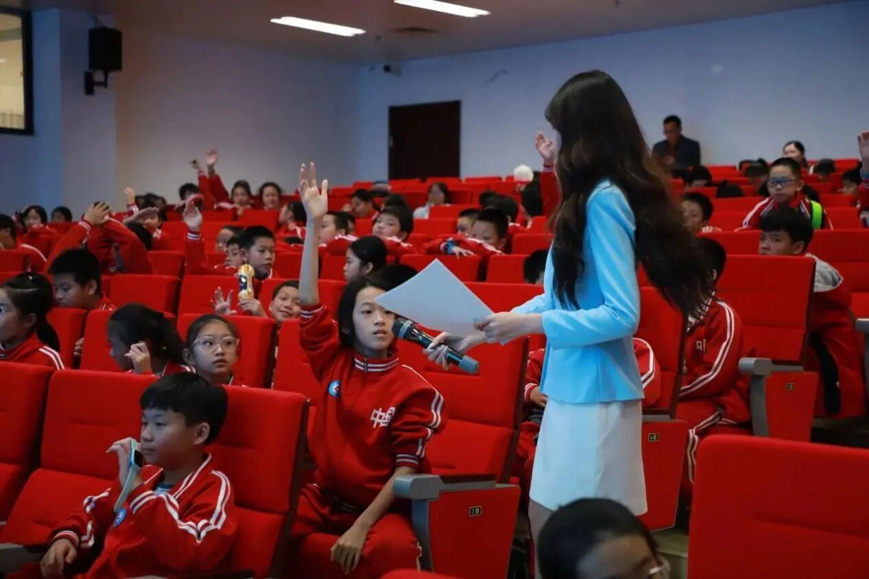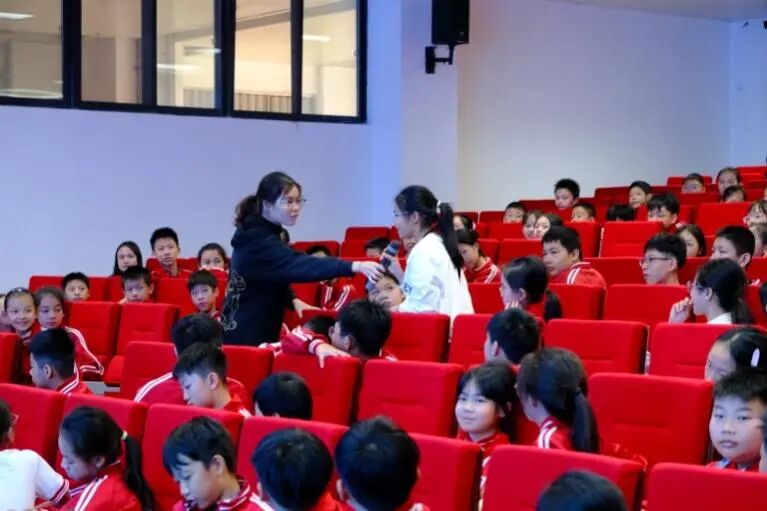 在互动交流环节,太阳成集团tyc7111cc的优秀学生代表与小朋友们面对面分享大学生活与学习经验。现场气氛活跃,小学生们踊跃提问,围绕学业规划、社团活动、成长经历等话题展开深入交流。学长学姐们的耐心解答与真诚分享,不仅拉近了大学与小学的距离,也在孩子们心中播下了向往大学生活的种子。