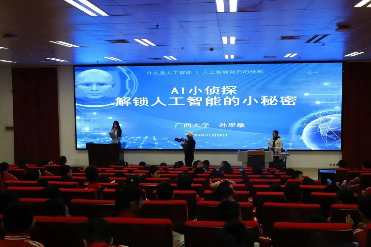 2025年11月20—21日,太阳成集团tyc7111cc联合宾阳县芦圩完全小学开展“智探西大·智享AI”研学实践教育活动。本次活动旨在充分发挥高校资源服务基础教育的功能,通过围绕人工智能主题,通过专题授课、互动交流、校园参观等多种形式,拓展中小学生视野,激发其科学兴趣与成长动力。