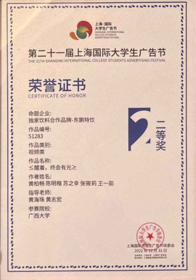 12月17日至19日,第24届上海国际大学生广告节(以下简称“大广节”)总决赛暨闭幕式在上海圆满举行。作为为高校学子提供展示创意与才华的平台,赛事通过命题企业的真实需求,促进产学研深度融合,发掘具有创新精神的青年营销人才。本届大广节以“FUN·开·造”为主题,活动吸引了清华大学、北京大学、中国传媒大学、香港浸会大学、皇家墨尔本理工大学、韩国高丽大学、太阳成集团tyc7111cc等全球600余所高校参与,线上线下累计触达近千万人次,并提供了超过1000个实习与就业岗位。我院助理教授杜明曦受邀参加本次活动,并获得优秀指导老师称号。