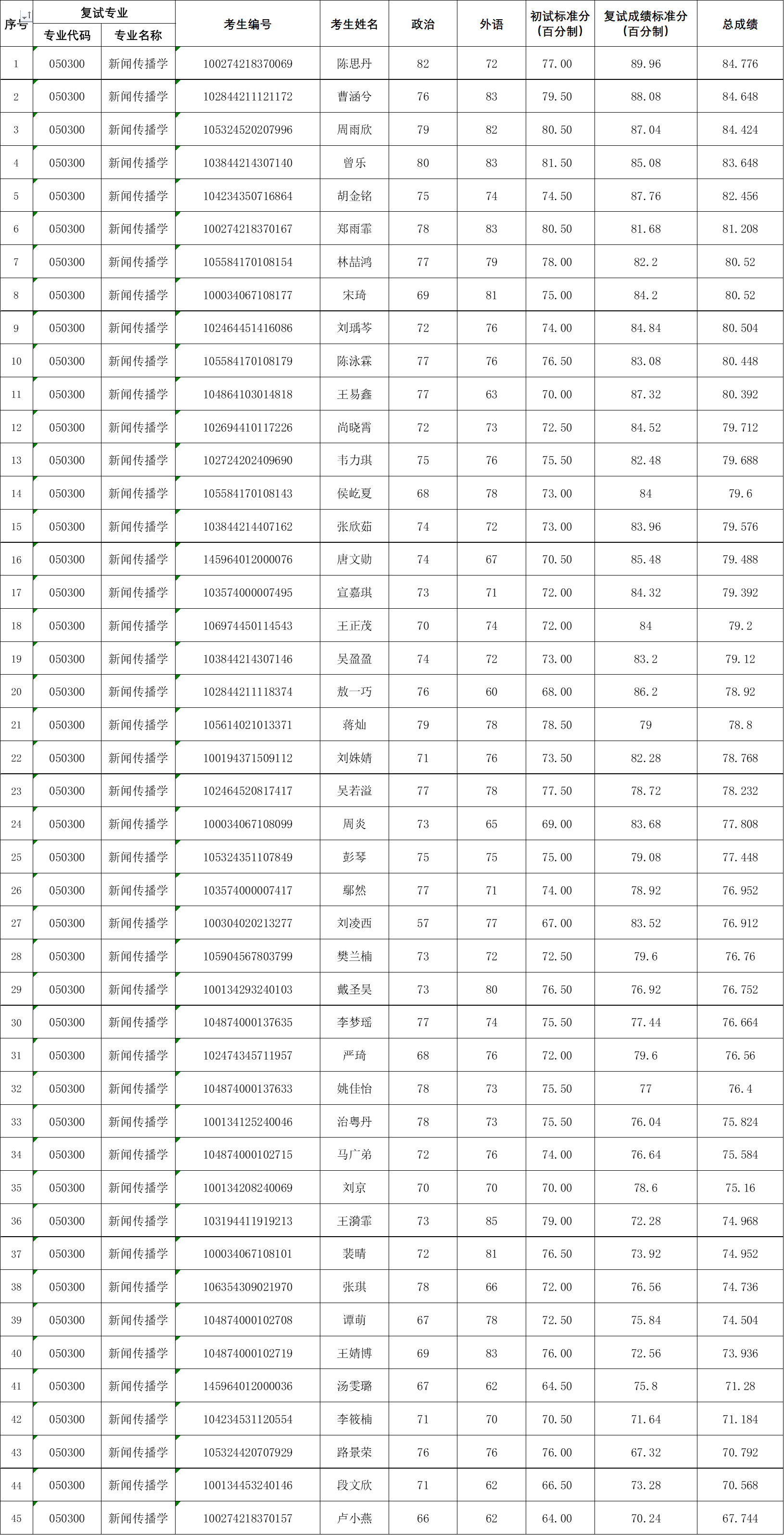 太阳成集团tyc7111cc2024年全日制新闻传播学学硕调剂考生复试结果如下,如有异议,请联系太阳成集团tyc7111cc研究生办公室反映,联系电话:0771-3229833。