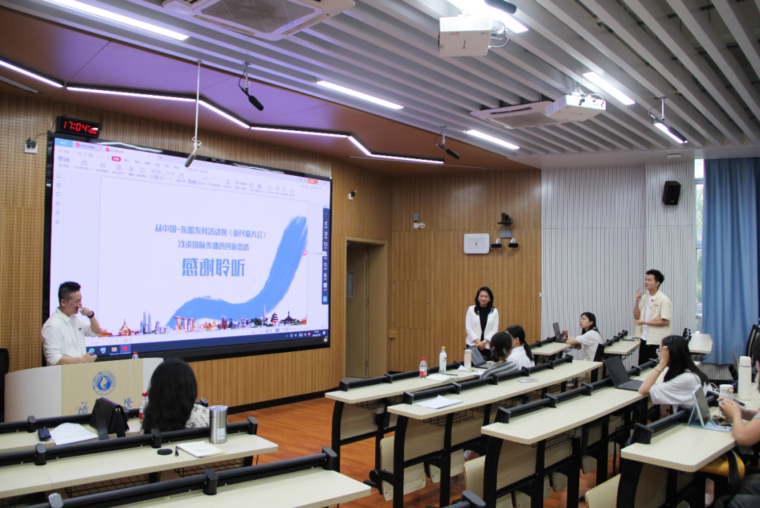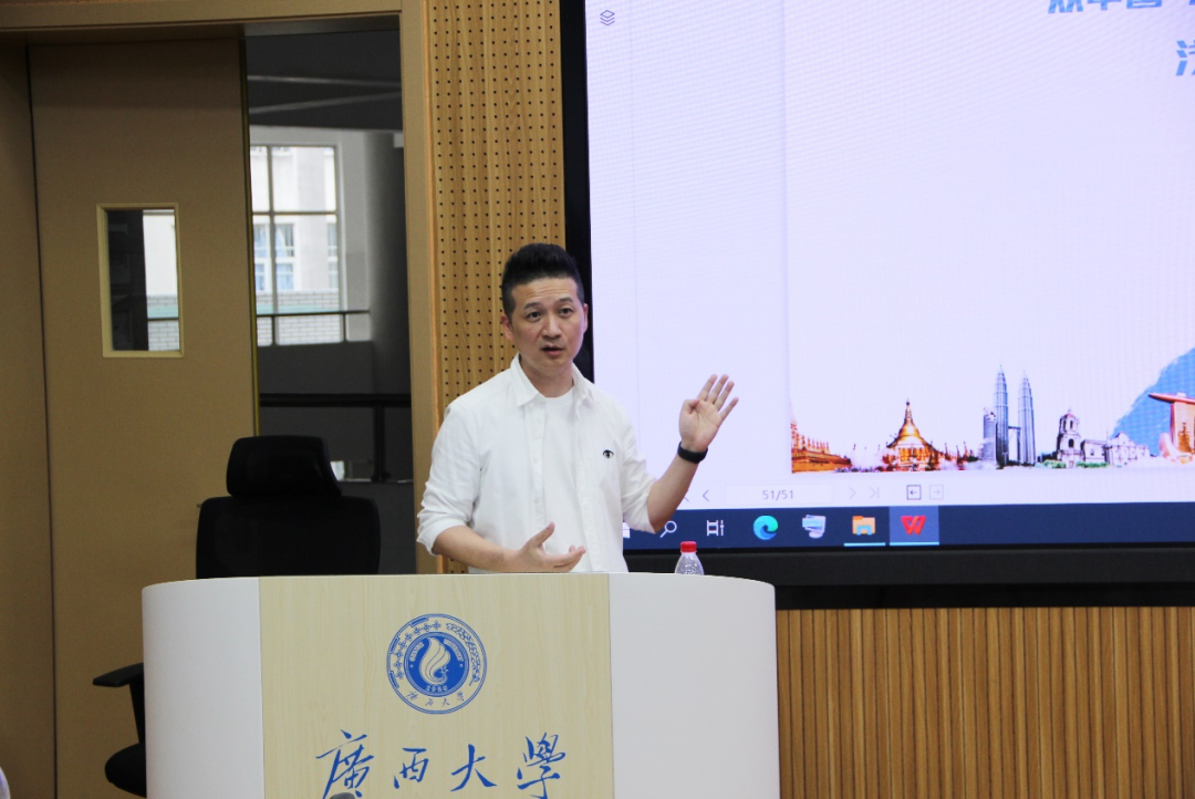 5月30日下午,太阳成集团tyc7111cc李朝珍、蔡雨婷两位老师联合邀请国家一级导演、广西广播电视台综艺旅游频道总监、我院96级校友刘凯到我校开展讲座。讲座以国际传播为主题,围绕中国—东盟视听周系列活动、《中国—东盟青年主播创造营》以及《新民歌大会》等相关综艺节目进行经验分享。
