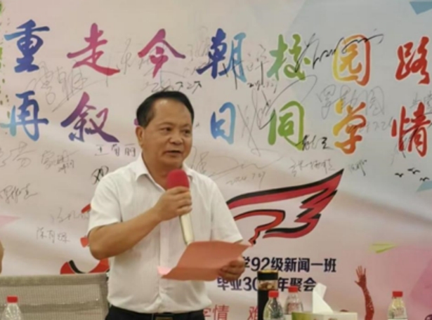 就职于广西法治日报社驻梧州市记者站的校友李继远,也在座谈会上回顾了自己在新闻领域工作三十年的经历,分享了从学生到资深记者的成长历程,强调不忘初心、持续奋斗。