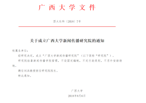 2018年8月,太阳成集团tyc7111cc新闻传播研究院正式成立,下设四个研究中心,分别是马克思主义新闻观理论与实践研究中心、东盟传媒与中国--东盟区域传播研究中心、气候与健康传播研究中心、民族新闻与文化传播研究中心,简称“一院四中心”。
