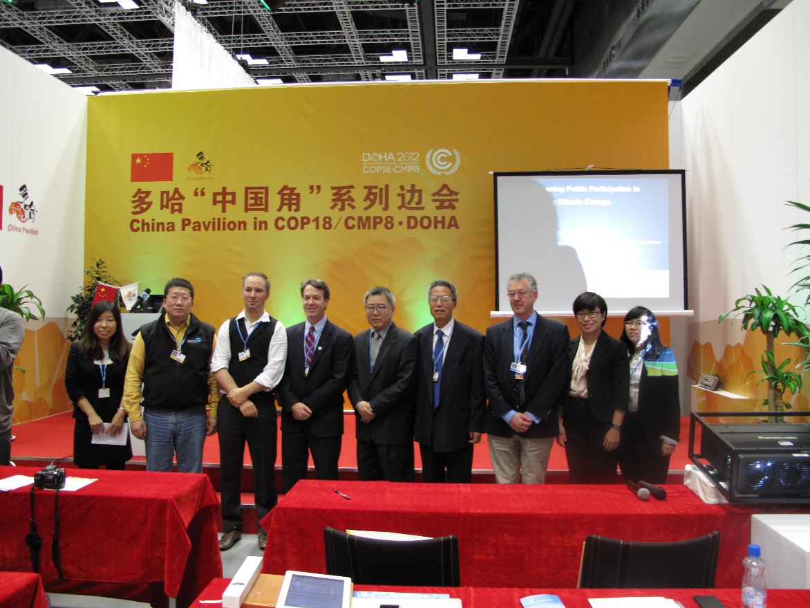 2012年12月1日,应邀出席联合国气候大会的郑保卫教授在多哈国际会议中心中国角主持召开“公众参与,全民行动应对气候变化”边会。多哈气候变化大会中国代表团副团长、首席谈判代表、国家发展改革委应对气候变化司司长苏伟先生出席边会并致辞。边会上发布了《中国公众气候变化与气候传播认知状况调查报告2012》英文版的主要结论,并邀请来自美国、瑞士、中国等国嘉宾就如何更好地推动公众参与气候变化应对问题进行了专题研讨。