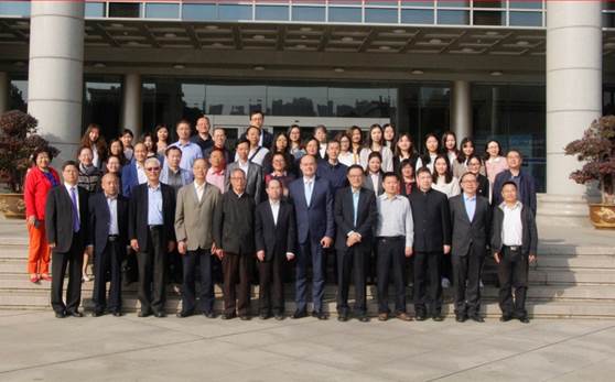 图为陈雨露校长与到会专家委员会成员合影(左四起为马胜荣、陈雨露、杜祥琬、巢清尘、赵彦云,左起为马忠、郑保卫)