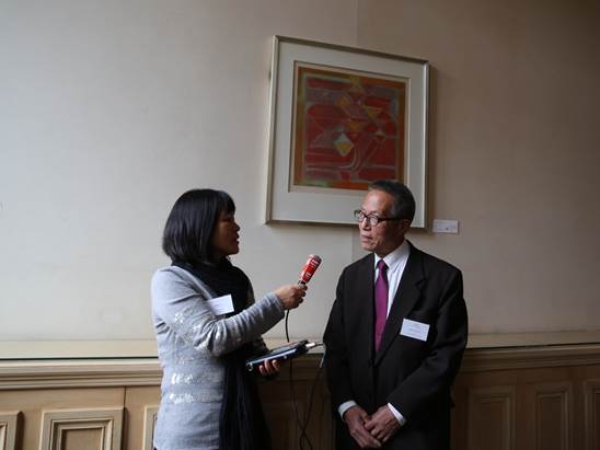 图为中国人民大学副校长杨慧林教授会见出席项目中心顾问委员会第一次会议成员