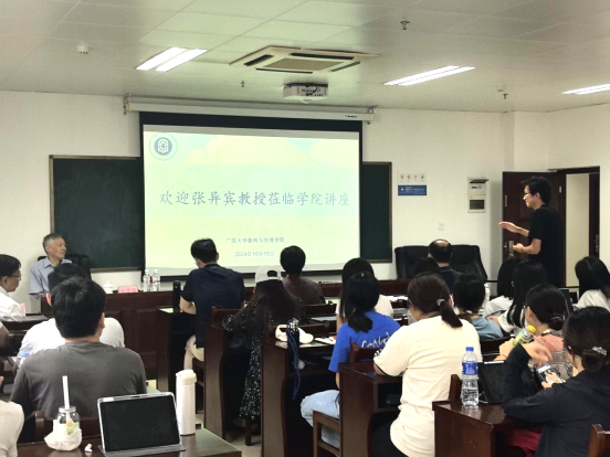 张异宾教授在讲座中首先结合新闻传播案例引出哲学与新闻的关系话题,接着提出在学习过程中应从应试教育的死记硬背到研究生学习“动脑筋”的转变,强调要打破“线性思维”,研究生应通过有选择地罗列、汇总与提炼知识,比如在课堂学习中要思考揣摩老师讲课的叙事逻辑来掌握科学研究的基本方法论。不仅能够帮助同学们在研究过程中形成清晰的思路和行文结构,更能推动同学们在独立思考中构建个人研究路径,在学术研究中能够逻辑化地表达思想,进而在研究领域内取得成就。