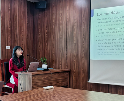 交流环节中,中越两国学生围绕演讲议题展开了热烈讨论,现场气氛活跃。通过此次研讨会,双方在中越跨文化研究方面加深了理解与共识,也为中越青年搭建了深入的学术交流平台。
