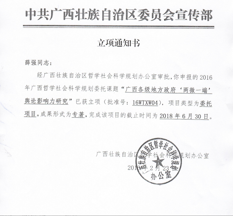 我院岳晓华教授2015年申报广西文化产业重大课题研究项目获得立项