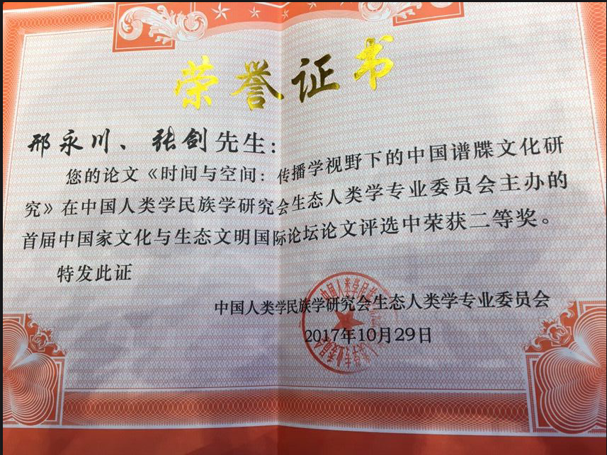 我院邢永川副教授、张剑副教授合作的论文在首届中国家文化与生态文明国际论坛论文评选中获二等奖