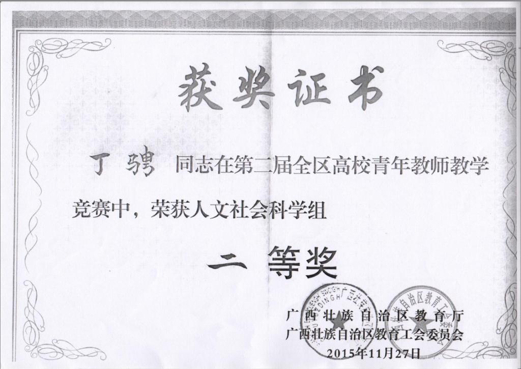 我院丁骋副教授获得第二届全区高校青年教师教学竞赛二等奖