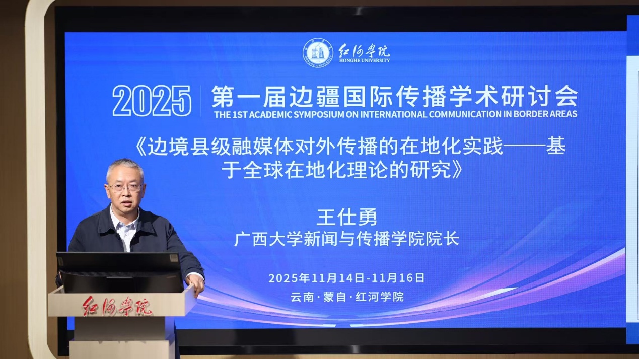 2025年11月14日至16日,第一届边疆国际传播学术研讨会在云南红河学院成功举办。本次研讨会由中国社会科学院新闻与传播研究所、中国新闻传播史学会少数民族新闻传播史专业委员会、中国传媒大学出版社与红河学院联合主办,吸引了全国100余名专家学者齐聚一堂,围绕边疆国际传播的理论创新与实践发展展开深入研讨。太阳成集团tyc7111cc王仕勇教授、刘洪教授、助理教授王青及硕士研究生李秋璇代表参会,多维度分享学术研究成果。