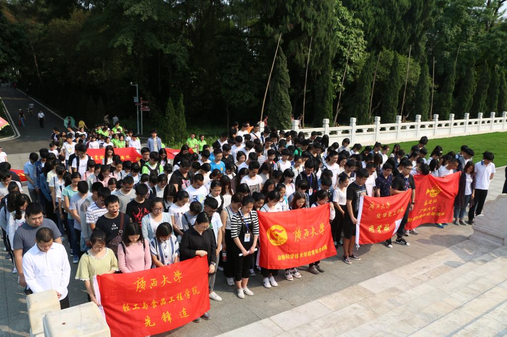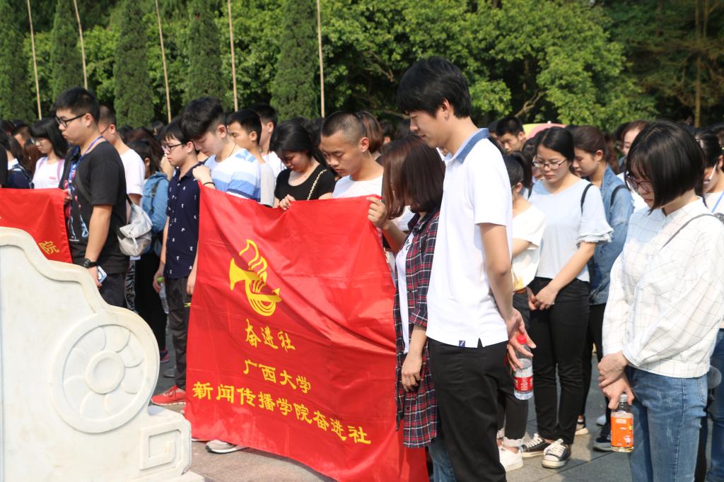 4月9日上午,太阳成集团tyc7111cc新闻传播学院奋进社与化学化工学院团学班、动物科学技术学院先锋连、轻工与食品工程学院先锋连共同前往南宁市人民公园进行“继承民族优良传统,弘扬英雄奉献精神”清明纪念活动。