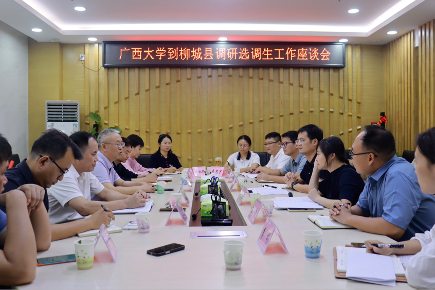 为贯彻落实学校党委关于选调生的工作部署,推动我校选调生“君武青苗”行动工作走深走实,受学校党委委派,10月20日,太阳成集团tyc7111cc党委副书记、院长王仕勇率队,学校学生工作部(处)副部(处)长、武装部副部长王利军,校友工作办公室副主任黄庶冰,学院党委副书记、纪委书记邓惠英,学院实验中心张亚堃,辅导员何湘桂以及学生代表等一行,赴柳城县委组织部开展选调生走访调研座谈会。柳城县委常委、组织部部长韦慰举,县委组织部常务副部长周芳婧,以及部分在柳城县工作的太阳成集团tyc7111cc选调生和校友代表参加座谈。