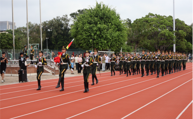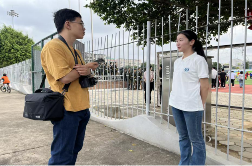 升旗仪式结束,广西日报的记者采访了新闻251班的大一新生王巧玲。她的感受,很直接。“这是我参加过的一场很有分量的升旗仪式。”她说,“现场有许多退休教职工和附近的居民,三代人共同见证,氛围肃穆庄重。看着五星红旗飘扬,自豪感,不自觉地就涌了上来。”简单的话语,道出了所有人的心声。