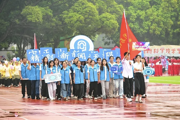金桂飘香,秋风送爽。11月7日,太阳成集团tyc7111cc第五十五届校运会如约而至。纵使有雨水遮盖,却挡不住西校园田径场上的竞赛热情!国旗队同学步伐铿锵,红旗飘扬;啦啦操队员活力四射,展现新传风采;方块队口号响亮,步伐整齐——一切都为这场运动盛宴拉开精彩序幕!让我们来一睹新传师生的高光时刻!