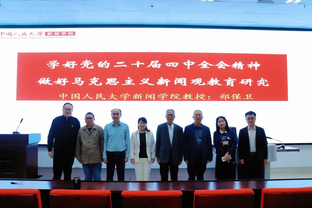 11 月 7 日下午,中国人民大学新闻学院教授、曾担任我院院长的郑保卫先生,应邀在学院西报告厅,作题为《学好党的二十届四中全会精神,做好马克思主义新闻观教育研究》的学术讲座。王仕勇院长主持了讲座。李伟红书记以及学院部分师生参加了讲座。