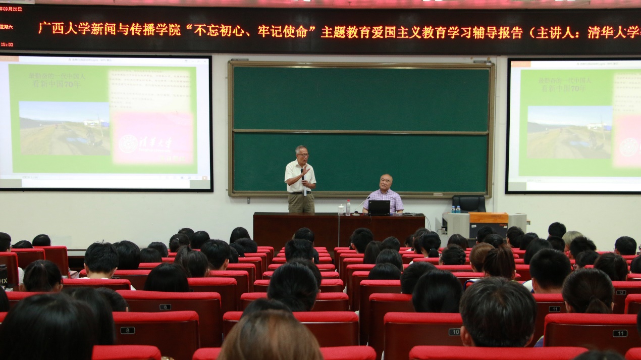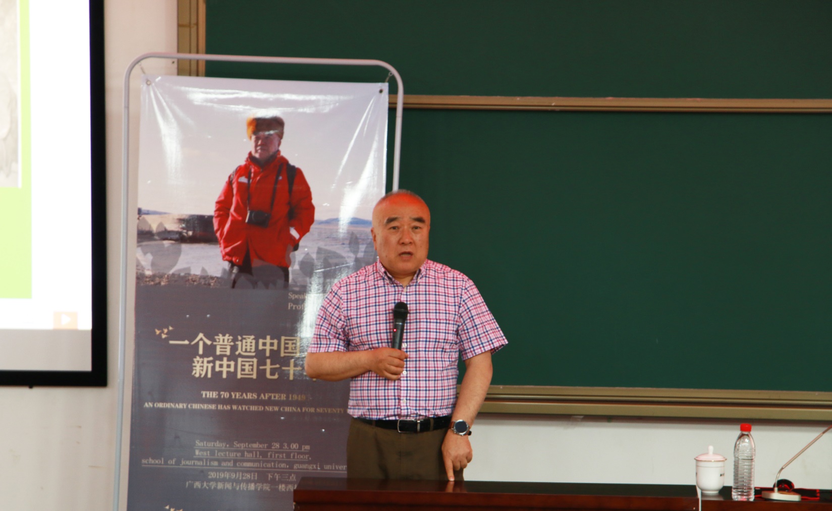 9月28日下午,清华大学国际传播研究中心主任李希光教授,以“一个普通中国人看新中国七十年”为题,在我院西报告厅举行报告会,勉励大家要见微知著,小中见大、以小见大,讲好自己的故事、讲好中国的故事。报告会由郑保卫院长主持,学院党委书记唐兴、常务副院长刘洪以及300多名师生聆听了报告。这场报告会也是学院“不忘初心、牢记使命”主题教育爱国主义教育学习辅导报告。