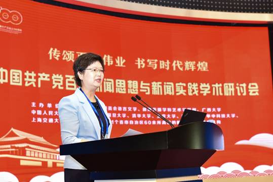 郑保卫院长在致辞中表示,回望历史,在长达一个世纪波澜壮阔的斗争历程中,中国共产党始终把新闻事业作为强大的“思想武器”和重要的“政治阵地”,用以传播文化,启蒙思想;宣传真理,唤起民众;组织斗争,抗击敌人;夺取政权,改造社会;发展经济,建设国家;推进改革,富民强国,始终在为民族解放、国家独立和人民翻身不懈奋斗,在为民族复兴、国家富强和人民幸福努力工作。他指出,在中国共产党成立100周年之际,总结中国共产党新闻事业百年来的光荣传统,概括百年中国共产党新闻思想的核心与精髓,揭示马克思主义新闻观在中国的形成发展过程,是献给党的百年华诞的最好礼物。