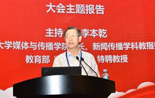 上海交通大学媒体与传播学院院长、新闻传播学学科教指委委员李本乾主持大会主题报告